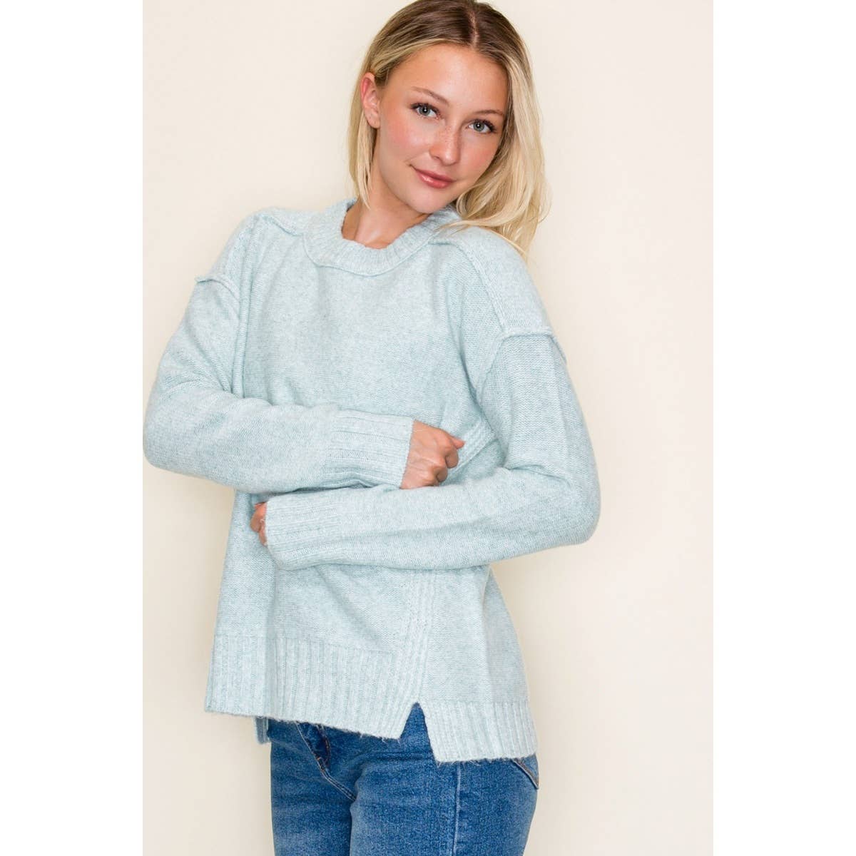 SEAM AND RIB DETAILED, LONG SLEEVE, SUPER SOFT, SOLID CREW NECK SWEATER