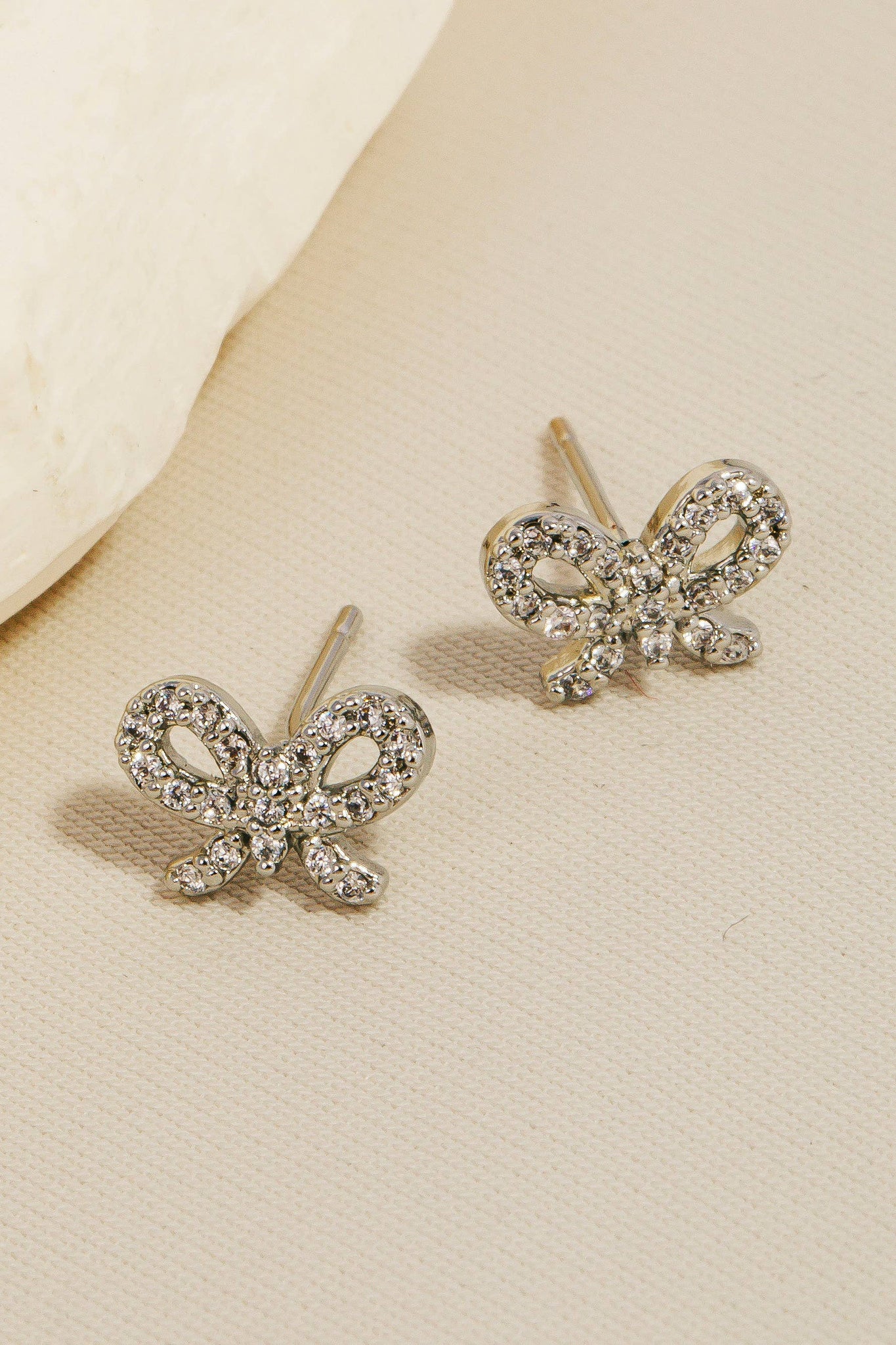 The perfect way to complete any outfit, this pair of stud earrings contains a special cz pave ribbon bow design. This item also includes/features a cubic zirconia studs. This item is ideal for those who want to add some personality to their outfits without being too bold. Available in G and S. This item is sold in packs of 1. This pair of stud earrings is made with 60% Brass and 40% Cubic Zirconia. Made in Korea.